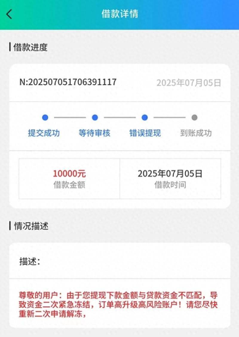 然而,款项迟迟未到账,焦急的梁先生联系平台客服后,却被告知因“银行卡号输入错误”导致账户冻结,需缴纳一万元“解冻金”才能提现。